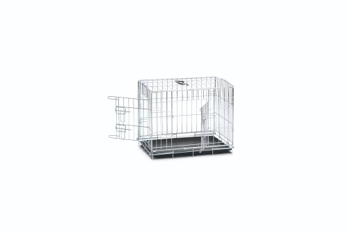 Strieborná drôtená klietka vhodná pre malé zvieratá. Ponúka bezpečné útočisko doma aj na cestách.
