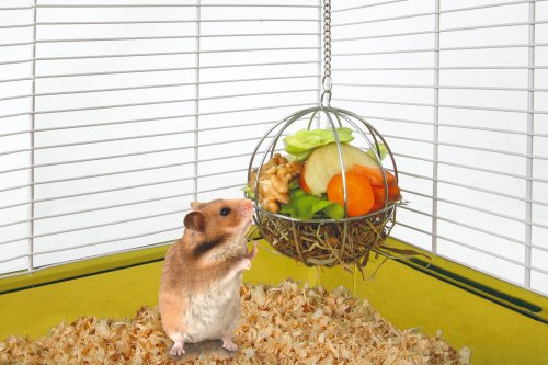 Praktické kovové krmítko pre hlodavce na zeleninu.