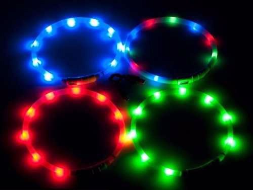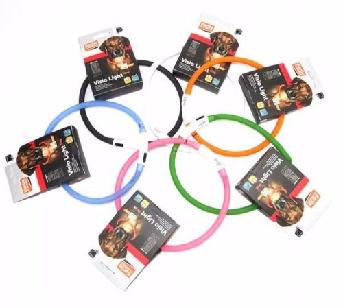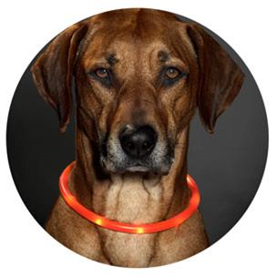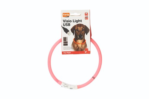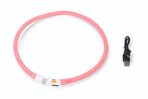 LED svetelný obojok ružový viditeľný až cca 500 m. Dobíjacie batérie pomocou USB kábla - žiadne iné batérie nutné - vodeodolná - blikajúce svetlo alebo kontinuálne svetlo. Veľkosť 20-70 cm