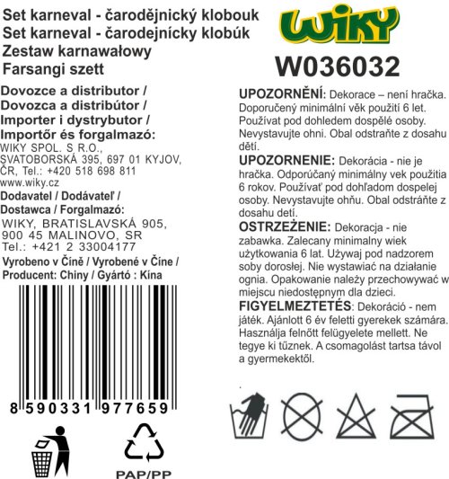 Set karneval - čarodejnícky klobúk o veľkosti 36,5x33,5 cm