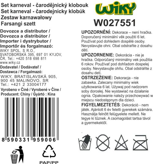 Karnevalový set čarodejnícky klobúk 2 farebné prevedenie: zlatý, strieborný