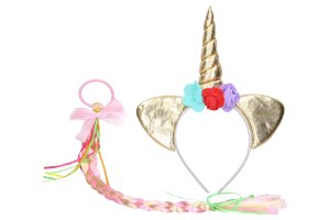 Čelenka jednorožec s vrkočom. Balenie obsahuje 2 ks a to čelenku 1ks a vrkoč na gumičke 1 ks