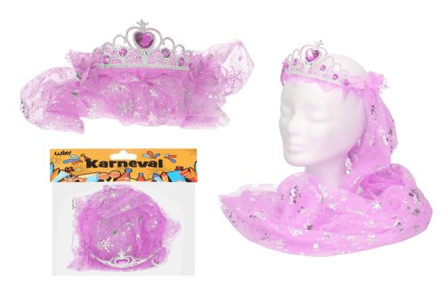 Čelenka so závojom na karneval. Modrá a ružová farba. Dĺžka závoja je 90 cm.