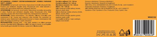 Set karneval cowboy. Pre deti o veľkosti 110-120 cm. Súčasti kostýmu: košele, nohavice, živôtik, klobúk, opasok, šatka.