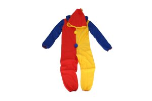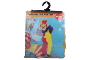 Set karneval klaun. Pre deti o veľkosť 110-120 cm. Súčasti kostýmu: oblek, čiapka, klaunský nos.