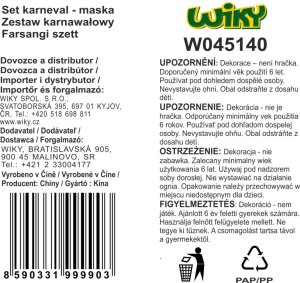 Karnevalový set škraboška MIX. 5 farebných prevedení.