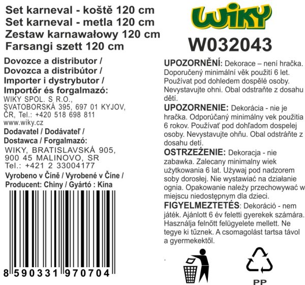 Karnevalový doplnok - metla cca 100 - 120 cm 3 farebné prevedenie.