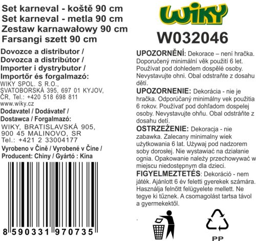 Karnevalový doplnok - metla 90 cm 3 rôzne farebné prevedenia