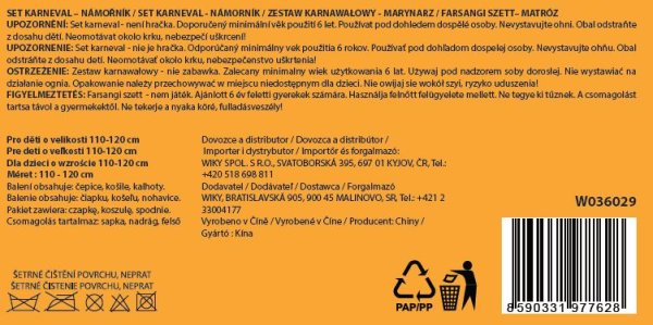 karneval - námorník M 110-120 cm - mix variantov či farieb - VÝPREDAJ