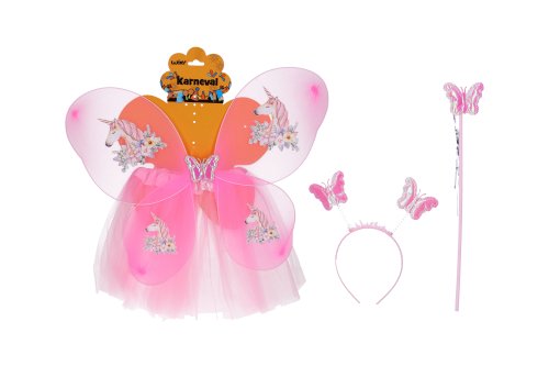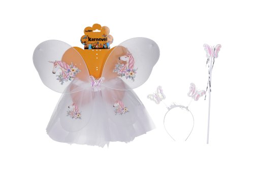 Karnevalový set - víla Obsahuje: sukne, krídla, palička, čelenka Dĺžka sukne: 30 cm