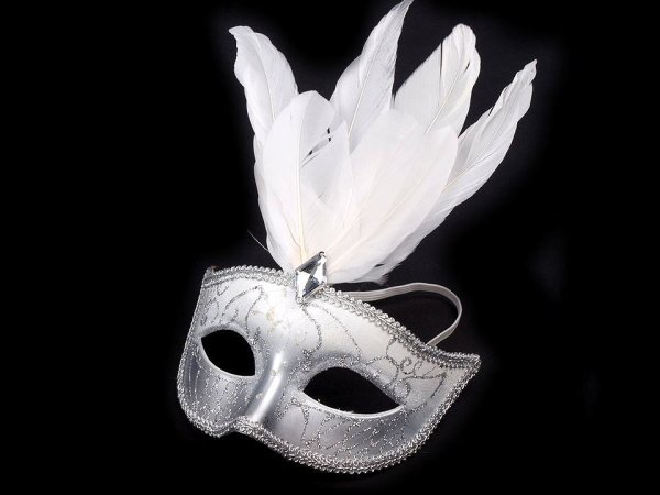 Karnevalová škraboška vám dodá tajomný a zvodný vzhľad na večierkoch, plesoch, párty, karnevale a pod. Škraboška je miestami pokrytá trblietavými glitrami a doplnená brúseným kameňom a perím.