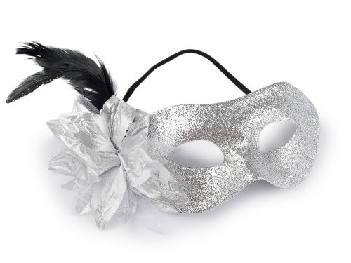 Karnevalová škraboška vám dodá tajomný a zvodný vzhľad. Využijete ju na rôzne večierky, párty, karneval a pod. Škraboška je celá pokrytá trblietavými glitrami. Jej bok zdobí textilný kvet a perie.
