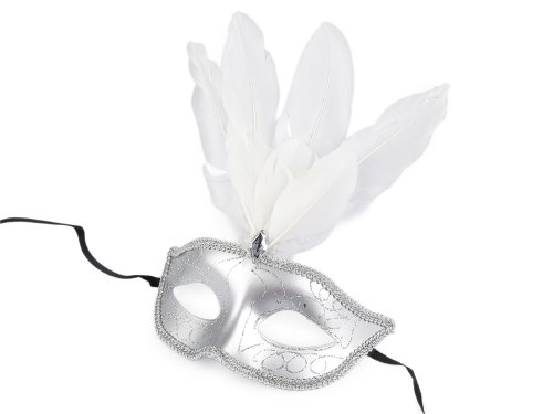 Karnevalová škraboška vám dodá tajomný a zvodný vzhľad na večierkoch, plesoch, párty, karnevale a pod. Škraboška je miestami pokrytá trblietavými glitrami a doplnená brúseným kameňom a perím.