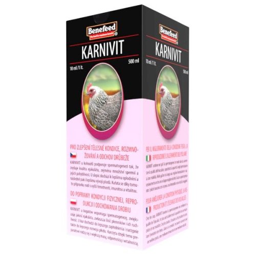 KARNIVIŤ u kohútov podporuje spermatogenézu, pretože zvyšuje kvalitu ejakulátu, najmä množstvo spermií a ich pohyblivosť. U sliepok dochádza k lepšiemu oplodneniu a následne potom aj lepšiemu vývoju plodov. Kurčatá sa vďaka KARNIVITu rodia s vyššou hmotnosťou, imunitou a vitalitou, čo sa pozitívne prejavuje na ich zdravotnom stave a vývoji v ďalšom období ich života.