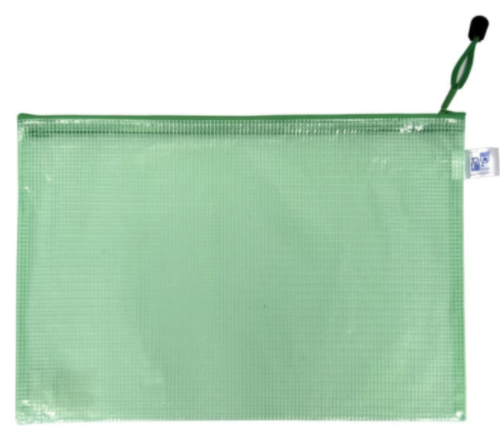 Sieťovaná obálka A5 so zipsom. Obálka má sieťovanú textilnú štruktúru, ktorá robí obálku odolnejšou. Materiál plast. Obálka je uzatvárateľná na zips. Rozmer 23 x 17 cm.