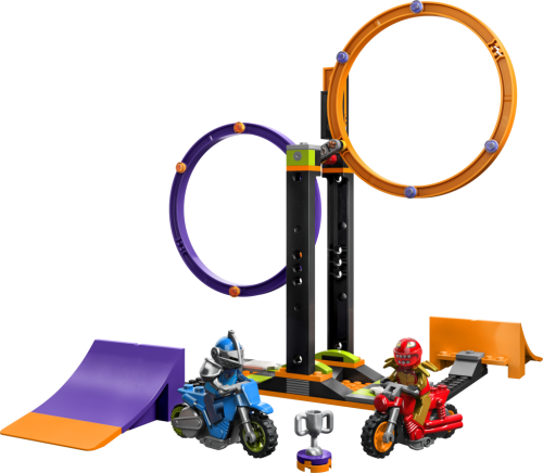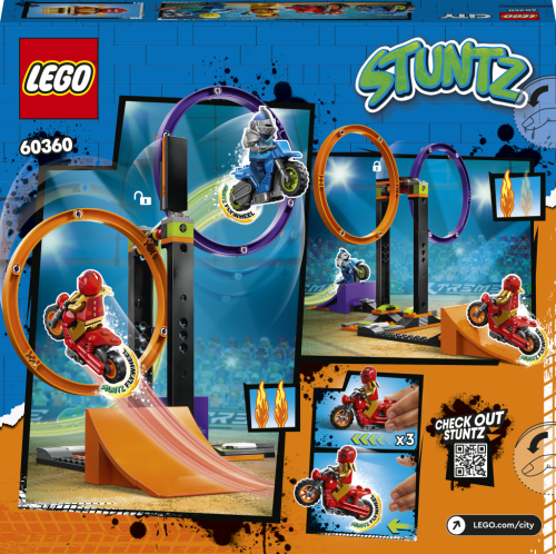 Deti od 6 rokov si zamilujú plánovanie vzrušujúcich predstavení, hier a súťaží s touto stavebnicou Kaskadérska výzva s rotujúcimi kruhmi od LEGO® City (60360). Nájdete v nej otáčavý dvojitý kaskadérsky kruh, 2 rampy a 2 kaskadérske motorky so zotrvačníkom. Stačí pridať 2 LEGO® City Stuntz jazdcov na motorkách a zábava môže začať!