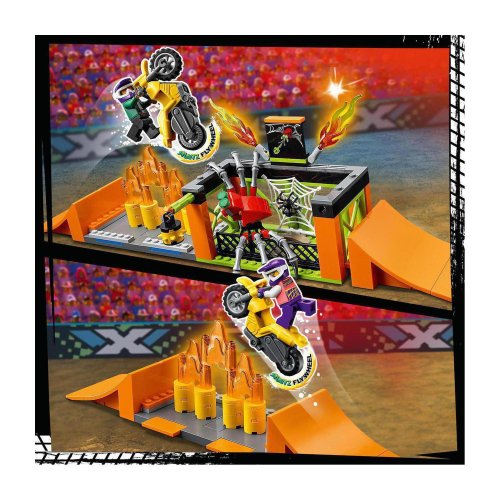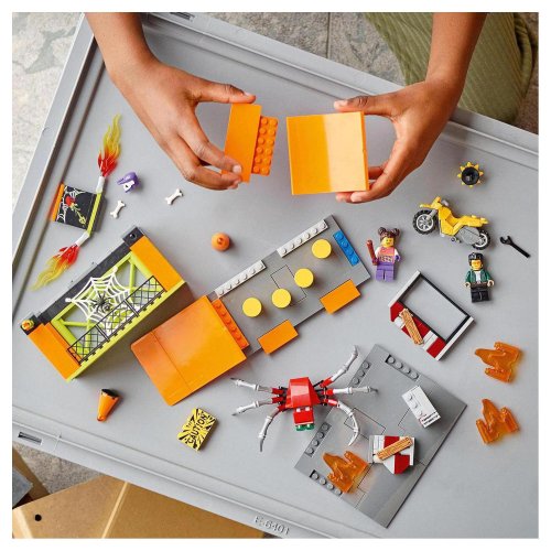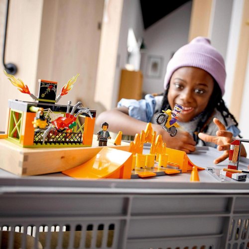 V tomto kaskadérskom tréningovom parku od LEGO® City (60293) si užijete veľa dych vyrážajúcej akcie na motorke so zotrvačníkom.