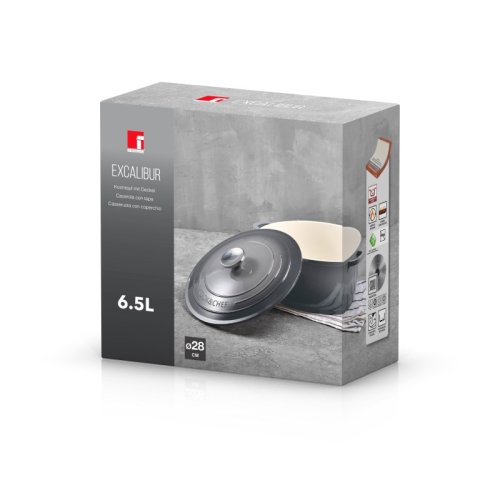 Tento kastról s vekom zaujme na prvý pohľad svojim elegantným dvojtónovým dizajnom a zároveň poteší každého, kto hľadá spoľahlivý, funkčný a štýlový riad na každodenné aj víkendové varenie. Spája kvalitné spracovanie s moderným vzhľadom a nepriľnavým vnútorným povrchom, ktorý uľahčuje prípravu jedál a ich servírovanie.