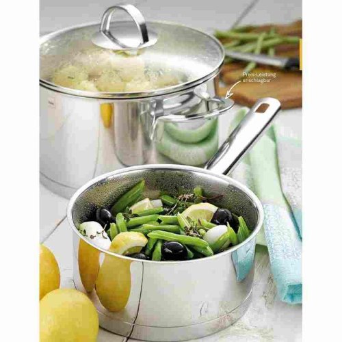 - materiál: nerezová oceľ 18/10 - objem: 2,4 l- výška: 9,5 cm- priemer: 20 cm- hrúbka steny 0,8 mm- sklenená pokrievka- nerezové rukoväteLuxusné hrnce a panvice nemeckej značky KELA, rady Cailin so zárukou 5 rokov sú vyrobené z lešte termoakumulačné dno, hrúbka steny 0,8 mm, sklenené pokrievky a nerezové rukoväte. Sú vhodné pre všetky typy sporákov vrátane indukčných.