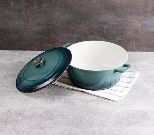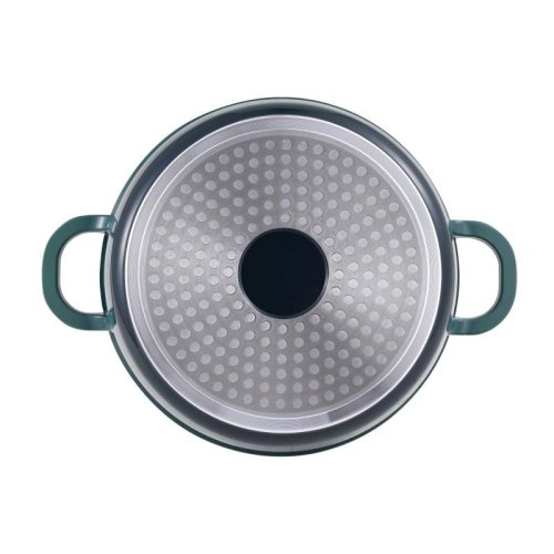 • 20cm / 2,2L kastról s pokrievkou. • Vyrobené z liateho hliníka, materiálu, ktorý veľmi dobre udržuje teplo. • Nepriľnavý povrch Cera + krémovej farby. • Exteriér v odtieňoch zelenej. • Špeciálna indukčná základňa vykladaná plástom, pre všetky typy ohňov. • Nerezový gombík navrhnutý tak, aby vydrž el.Excalibur prináša do vašej kuchyne efektívny a sofistikovaný riad s nádychom farieb. Kastról s priemerom 20 cm má kapacitu 2,2 litra a je vyrobený zo strategicky tvarovaného liateho hliníka pre najlepšie udržanie a distribúciu tepla, spolu s ekologickým keramickým nepriľnavým povrchom pre šetrné varenie a plnú chuť. Kolekcia pripomínajúca staromódnu kuchyňu s prechodovým zeleným dizajnom, vekom s nerezovým gombíkom a úchytmi, ktoré uľahčujú pohyb. Kastról sú vysoko trvanlivé a odolné proti korózii, rovnako ako majú indukčnú základňu, ktorá účinne prenáša teplo zo základne na okraje na varenie na akejkoľvek varnej doske, vrátane indukcie. Na predĺženie životnosti panvice sa odporúča ručné umývanie bez toxických látok, ako je PFOA.
