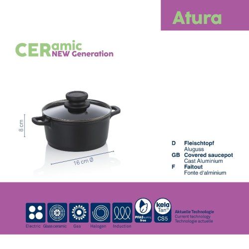 Vysoko kvalitný hrniec Atura z liateho hliníka s inovatívnym keramickým povrchom. Neobsahuje teflón!