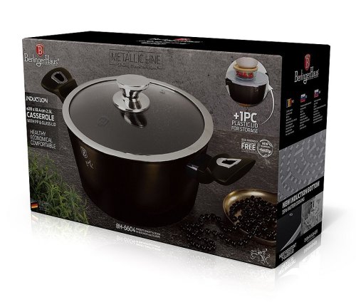 Kastról s mramorovým povrchom a pokrievkou v atraktívnom dizajne. Súčasťou kastróla je tiež presne padnúce silikónové viečko, ktoré vám uľahčia skladovanie uvareného jedla napríklad priamo v chladničke.