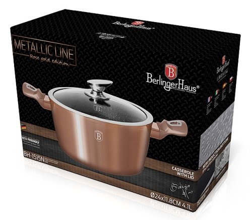 Kastról s mramorovým povrchom a pokrievkou 24 cm Rosegold Metallic Line BH-1515