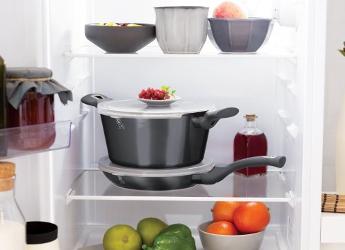 - súčasťou je aj priehľadné skladovacie viečko, ktoré spoľahlivo uzavrie kastról s už hotovým pokrmom