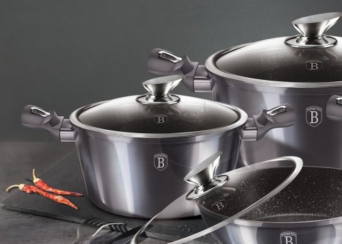 - 3-vrstvový povrch s mramorovým dizajnom charakteristický svojou dokonalou nepriľnavosťou, pripravované potraviny sa nepripaľujú a vďaka tomu sa riad veľmi jednoducho čistí