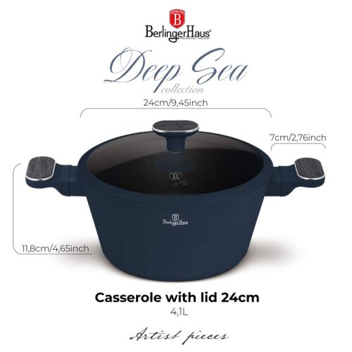 Varte, zapekajte a servírujte s priestranným zapekacím hrncom Berlinger Haus , ktorý je vyrobený z kovaného hliníka s odolným nepriľnavým povrchom TitanPro. Vďaka modernému dizajnu v matnej modrej farbe so šedými drevenými detailmi sa stane ozdobou každej kuchyne.