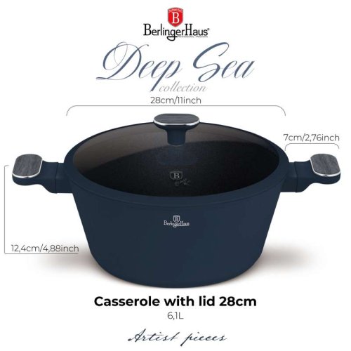 Varte, zapekajte a servírujte s priestranným zapekacím hrncom Berlinger Haus , ktorý je vyrobený z kovaného hliníka s odolným nepriľnavým povrchom TitanPro. Vďaka modernému dizajnu v matnej modrej farbe so šedými drevenými detailmi sa stane ozdobou každej kuchyne.