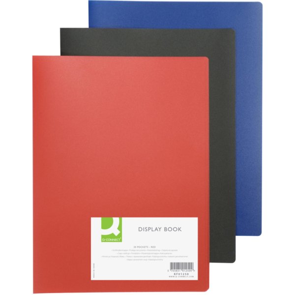 Pevné dosky, vo vnútri polypropylénové obaly typu „U“ zvarené v chrbte Pre dokumenty A4 Pre katalogizáciu prospektov, letákov a pod formát-A4, prevedenie-20 vreciek, farba-modrá