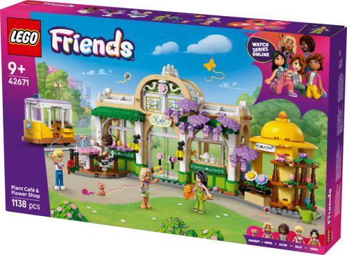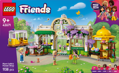 Popustite uzdu detskej fantázii so stavebnicou LEGO® Friends Kaviareň plná rastlín a kvetinárstva pre dievčatá a chlapcov, v ktorej nájdete aj model električky Táto prepracovaná stavebnica LEGO® obsahuje hneď niekoľko miest, ktoré inšpirujú deti k vymýšľaniu príbehov o priateľstve, vrátane kvetinárstva, kaviarne s vonkajším posedením, Aliyi, Esmy, Ollyho a Novy a figúrku mačky Nugget a veľa doplnkov k jedlu, rastlín a kvetín Objavte rad doplnkov vrátane kávovaru, chladničky, rúry, kohútika, stola, pečiva, nápojov, stoličiek, kytíc, rastlín v kvetináčoch, nožníc, kanvy a ďalších