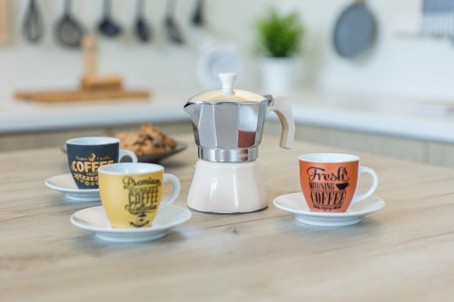 Kávovar CAMPI na 6 šálok je tradičný kávovar na domácu prípravu chutnej silnej kávy. Je vhodný na použitie na plynových, elektrických a sklokeramických doskách. Hliníkové telo kávovaru už po niekoľkých šálkach získa patinu, ktorá je pre správnu chuť kávy nenahraditeľná. Kávovar je vybavený bezpečnostným ventilom. Kávovar nie je vhodný na umývanie v umývačke.