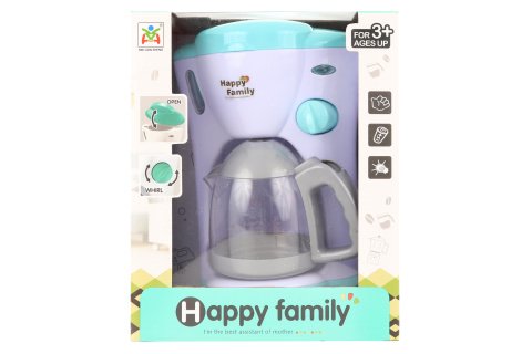 Plastový kávovar na batérie. Napájanie na 2 AA batérie (nie sú súčasťou). Kávovar vydáva zvuky a svieti rovnako ako pri príprave kávy. Rozmery balenia cca 19,5 x 24 x 14,5 cm. Vek 3+
