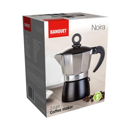 Kávovar NOIRA je tradičný kávovar na domácu prípravu chutnej silnej kávy. Je vhodný na použitie na plynových, elektrických a sklokeramických doskách. Hliníkové telo kávovaru už po niekoľkých šálkach získa patinu, ktorá je pre správnu chuť kávy nenahraditeľná. Kávovar je vybavený bezpečnostným ventilom. Kávovar nie je vhodný na umývanie v umývačke.