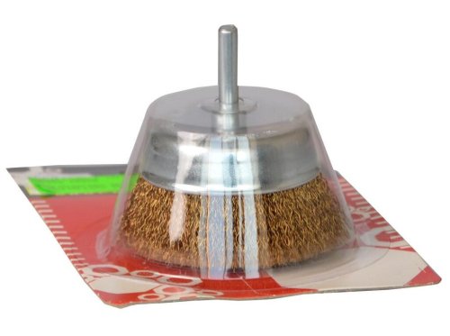 Rotačná kefa - črepníkové prevedenie: vlnitý drôt 0,25 mm - pomosadený priemer: 68 mm stopka: 6 x 27 mm pozinkované telo kefy počet drôtov: 1728 dĺžka drôtu: 19 mm max. prípustné otáčky: 4500 1/min balenie: Kefa je perfektná na leštenie, zdrsňovanie, odstránenie hrdze a otrepov.
