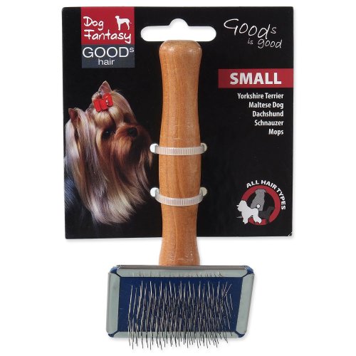 Kefa s kovovými drôtikmi a drevenou rukoväťou pre menšie psy.