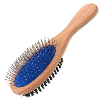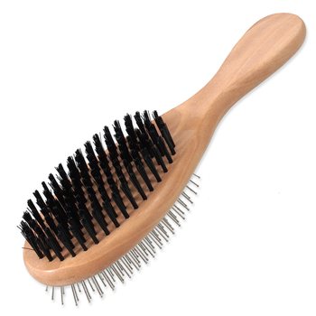 Obojstranná drevená kefa. Strana s nylonovými štetinami pomáha účinne odstraňovať nečistoty a uvoľnenú srsť.