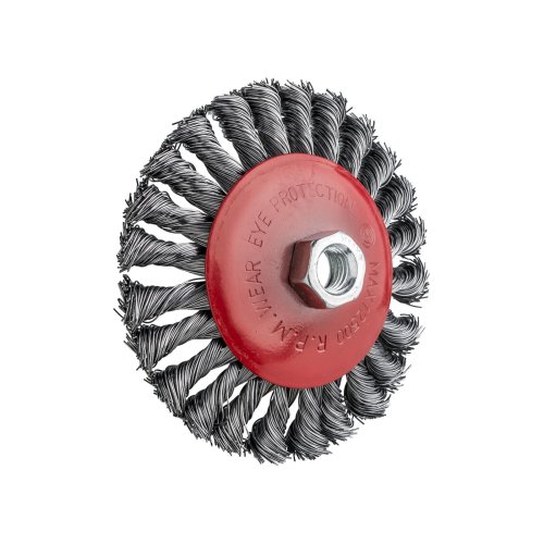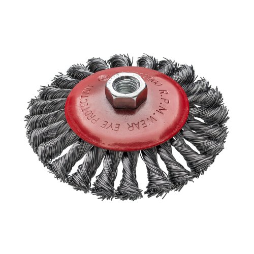 Na čistenie povrchov od starých náterov a odstraňovanie hrdze Vysoko kvalitná kefa na brúsky s univerzálnym, štandardným uchytením na závit M14. Kefa je vyrobená zo silného krúteného drôtu, a dá sa preto použiť na odstraňovanie silnej hrdze a nečistôt. Tvar kefy umožňuje prácu v ťažko prístupných miestach.