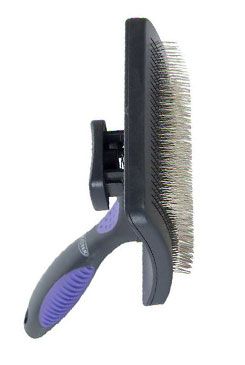BUSTER samočistiaci slicker - Slicker Brush je jemný a účinný viacúčelový ošetrujúci nástroj na odmastenie a odstránenie nechcených vypadávajúcich chĺpkov - Zasúvacie kolíky vám ušetria drahocenný čas na čistenie - Keď je podložka plná, uvoľnite chĺpky stlačením tlačidla zadná strana vložky -