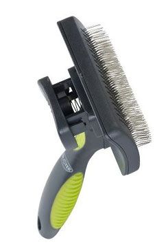 BUSTER samočistiaci slicker - Slicker Brush je jemný a účinný viacúčelový ošetrujúci nástroj pre odmastenie a odstránenie nechcených vypadávajúcich chĺpkov - Zasúvacie kolíky vám ušetria drahocenný čas na čistenie - Keď je podložka plná, uvoľnite chĺpky stlačením tlačidla zadná strana vložky -