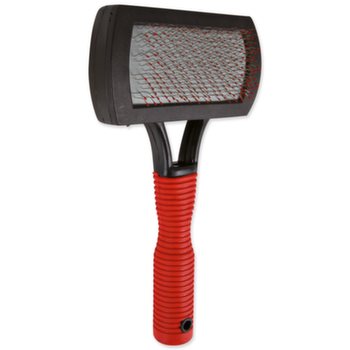 Jednostranná kefa z umelej hmoty s gumovou rukoväťou pre psov. Vhodný pre psy s dlhou, krátkou, kučeravou a hrubou srsťou.