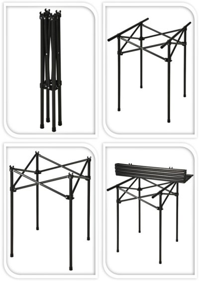 * Před použitím stolu se ujistěte, že jsou všechny zámky a bezpečnostní prvky správně zapnuty. Nezabezpečený stůl se může během používání složit. 5. Povětrnostní podmínky: