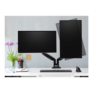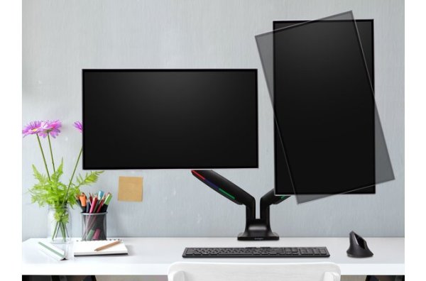 Rameno na dva monitory Kensington SmartFit® s výškovým nastavením jediným dotykom umožňuje ľahké prispôsobenie výšky, hĺbky a uhla každého z externých monitorov. Vďaka výškovému nastaveniu 170–505 mm, natočeniu a otočeniu monitora ±90° alebo úprave naklonenia v rozmedzí ±90° vám plne kĺbovitá konštrukcia produktu poskytne úplnú kontrolu nad umiestnením oboch monitorov – dajú sa umiestniť vedľa seba, alebo nad seba. Vďaka úprave napnutia protizávažia môžete ,utiahnuť' alebo ,povoliť' jednotlivé ramená, aby ste ich prispôsobili hmotnosti daného monitora a ľahko tak zaistili dokonalú stabilitu (súčasťou balenia je inbusový kľúč).