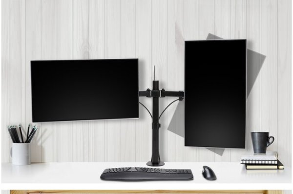 Montážne dosky kompatibilné so štandardom VESA® 75/100 s možnosťou rýchleho uvoľnenia si poradia s monitormi až do veľkosti 32" a hmotnosti 8 kg (na každom ramene).