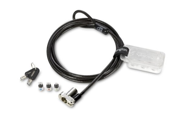 Zámok Kensington s kľúčom 3 v 1 Univerzálny zámok na notebook 3 v 1 s kľúčom sa hodí do akéhokoľvek bezpečnostného slotu notebooku – štandardného, nano aj klinového – a pomáha tak „zaistiť budúcnosť“ vášho uzamykacieho riešenia. Hroty zámku je možné ľahko vymeniť; popruh udržuje nepoužité hroty zámku po ruke. Spoločný 5mm kľúčový systém, patentovaná technológia Hidden Pin™ a lanko z uhlíkovej ocele poskytujú silné zabezpečenie proti vyzdvihnutiu a pokusom o krádež. Otočná a otočná hlava zámku umožňuje flexibilný pohyb a ľahké vkladanie kľúča. Medzi ďalšie funkcie patrí Register & Retrieve™ pre rýchlu, bezpečnú a jednoduchú výmenu kľúča; a päťročnou zárukou.