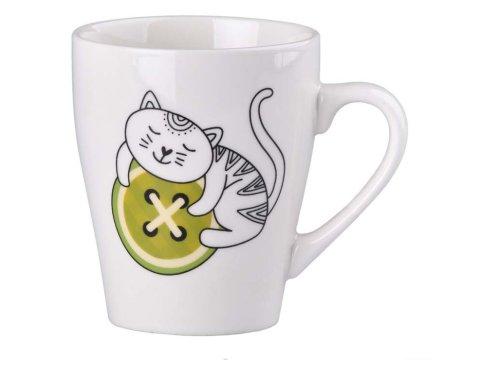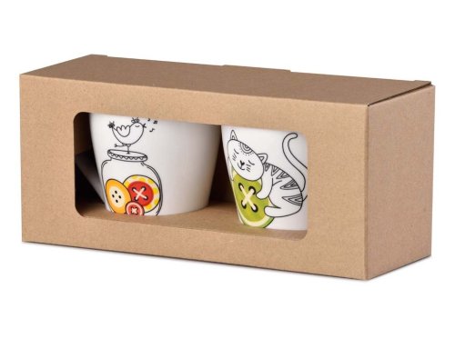 Táto sada dvoch keramických hrnčekov 340 ml kombinuje praktickú veľkosť s originálnym dizajnom. Mix farieb dodáva kuchyni hravý vzhľad. Hrnčeky sú vhodné na každodenné použitie, kávu, čaj aj ako darček.