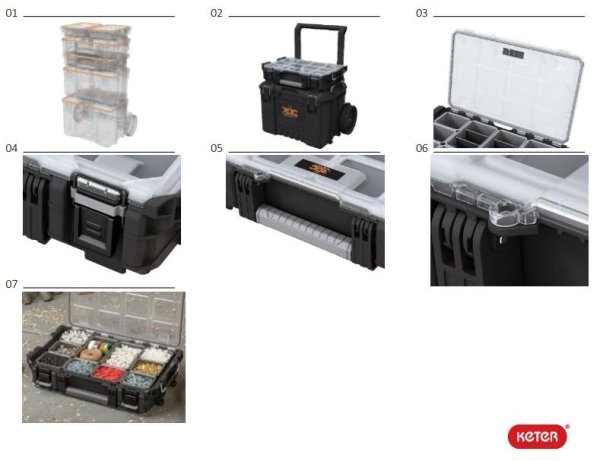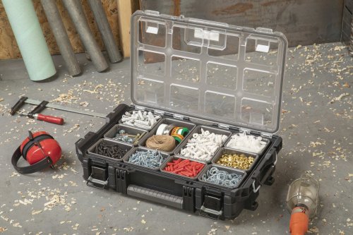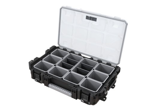So svojim kompaktným dizajnom a pevnou konštrukciou vyhovuje organizér ROC Pro Gear 1.0 profesionálom, ktorí hľadajú funkčný, prenosný a odolný organizér, ktorý zvládne svoju prácu každý deň. Tento profesionálny organizér, vyrobený z odolnej živice s vysokým nárazom, má kovovú západku a tri držadlá, ktoré ponúkajú niekoľko možností nosenia. Obsahuje 8 malých a 2 široké vyberateľné nádoby na rýchly prístup pri práci. Tento organizér je vďaka tesneniu odolný voči vode a prachu a umožní Vám tak pracovať za všetkých druhov poveternostných podmienok. ROC Pro Gear 1.0 Organizer je kompatibilný s modulárnym a stohovateľným Professional Tool Storage System 1.0 a 2.0 (okrem kompaktného organizéra).