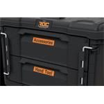 Šuplíky Pro Gear XL sú inovatívne, s prémiovými funkciami a najdostupnejšie, všestranné a mobilné modulárne riešenie. Zásuvky sú uzamykateľné spredu vďaka robustným predným zámkom, ktoré umožňujú bezpečnú prepravu zásuvkovej jednotky XL. Zahrnuté prepážky umožňujú vnútornú organizáciu a ukladanie malých dielov a prehľadné rozdelenie v hlbokej zásuvke na rýchle vyhľadávanie a rôznorodý obsah náradia, vďaka čomu bude Vaše vybavenie usporiadané. Zásuvky XL 2 majú hlboké zásuvky na uloženie veľkých a malých nástrojov s maximálnou ľahkosťou a pohodlím.